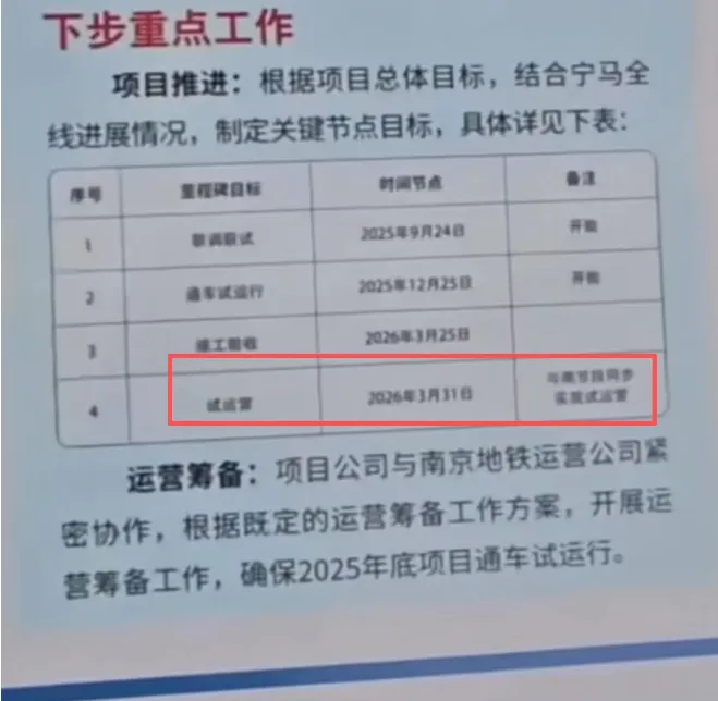 近期,有網(wǎng)友曝光了寧馬城際鐵路(馬鞍山段)工程展示牌,據(jù)顯示,寧馬城際(馬鞍山段)試運營時間為2026年3月31日,與南京段同步實現(xiàn)試運營。