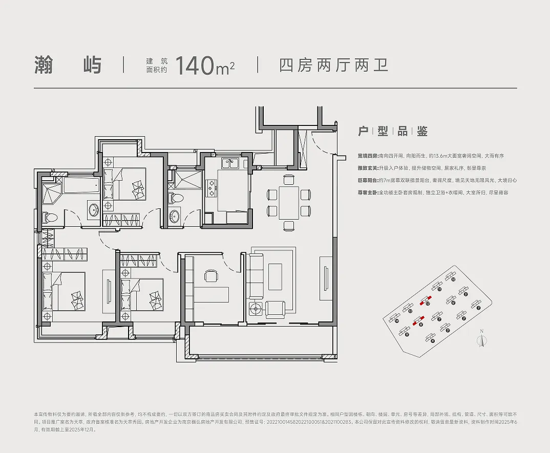建面約140㎡四房兩廳兩衛(wèi)戶型↓