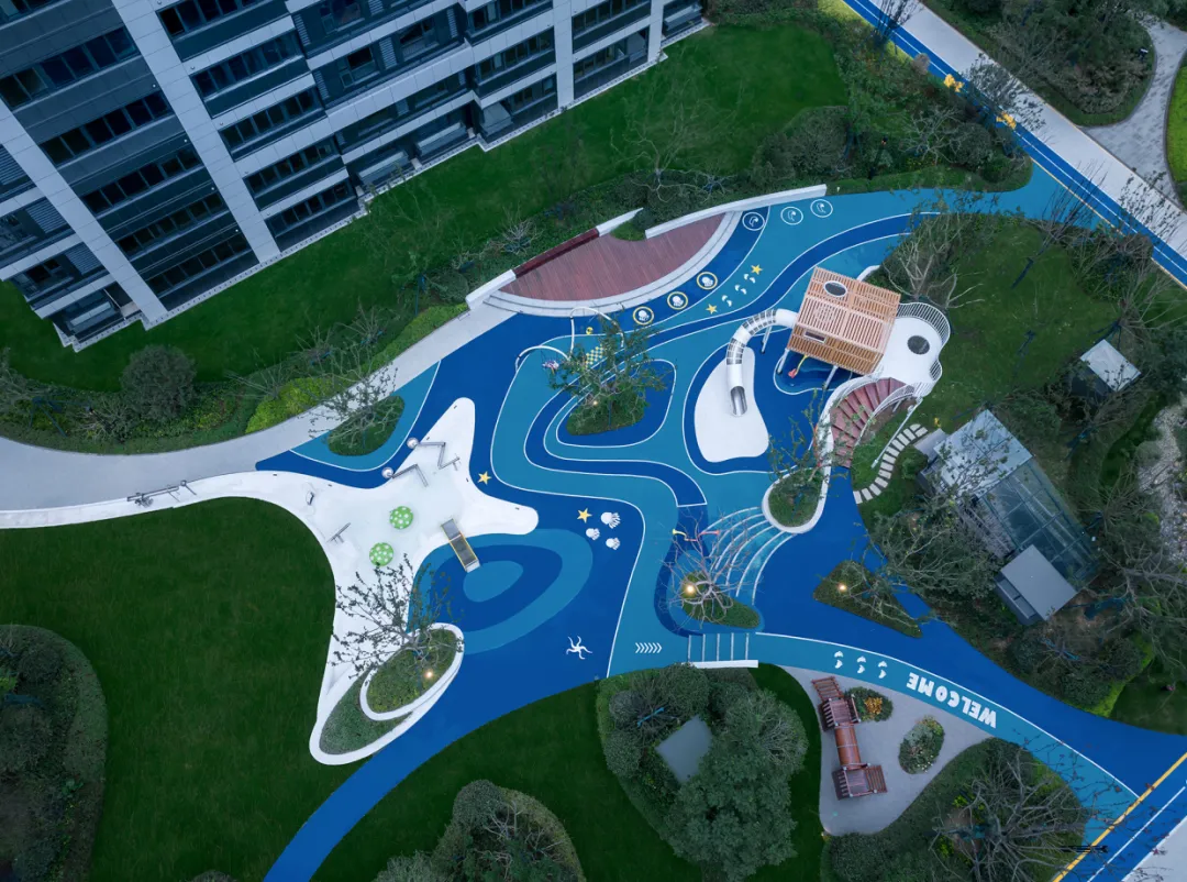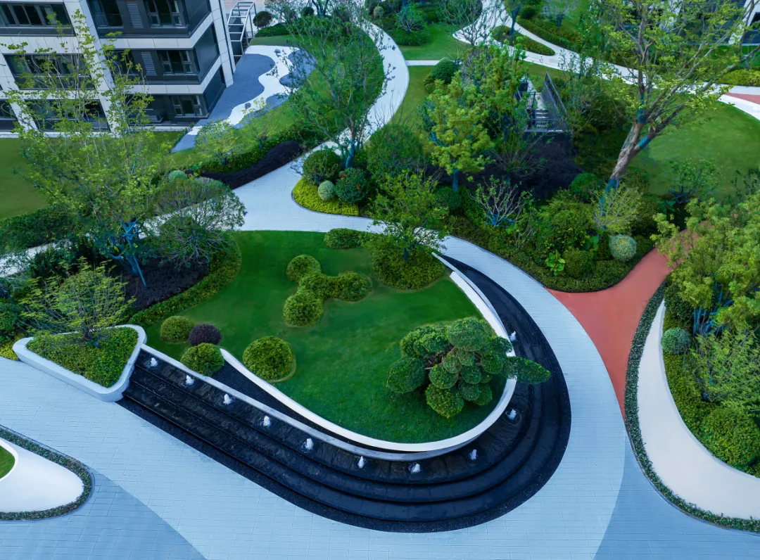 約600米環(huán)形跑道如一條靈動的絲帶,穿梭于園林之間;1大活力共享水系似一條璀璨的項鏈,串聯(lián)起整個社區(qū)景觀。