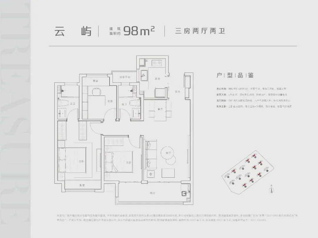 越秀天萃最大的誠意在于,這樣的產(chǎn)品總價約220萬起步,得到的是性價比之王建面約98㎡的三房兩衛(wèi)戶型。