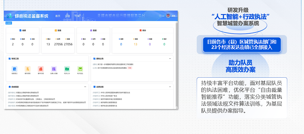 研發(fā)升級“人工智能+行政執(zhí)法”智慧城管辦案系統(tǒng)。