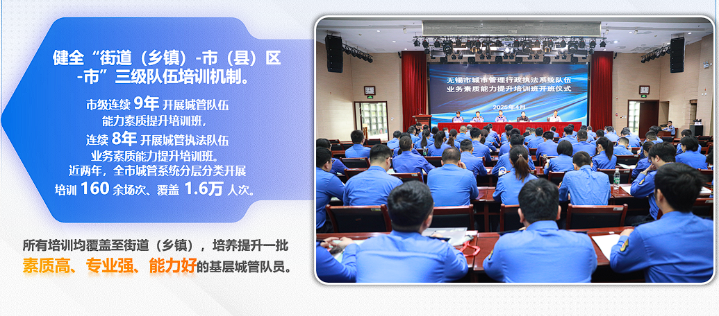 健全“街道(鄉(xiāng)鎮(zhèn))-市(縣)區(qū)-市”三級隊伍培訓(xùn)機(jī)制,近兩年,全市城管系統(tǒng)分層分類開展培訓(xùn)160余場次、覆蓋1.6萬余人次。