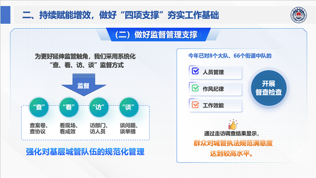 強(qiáng)化對基層城管隊伍的規(guī)范化管理。