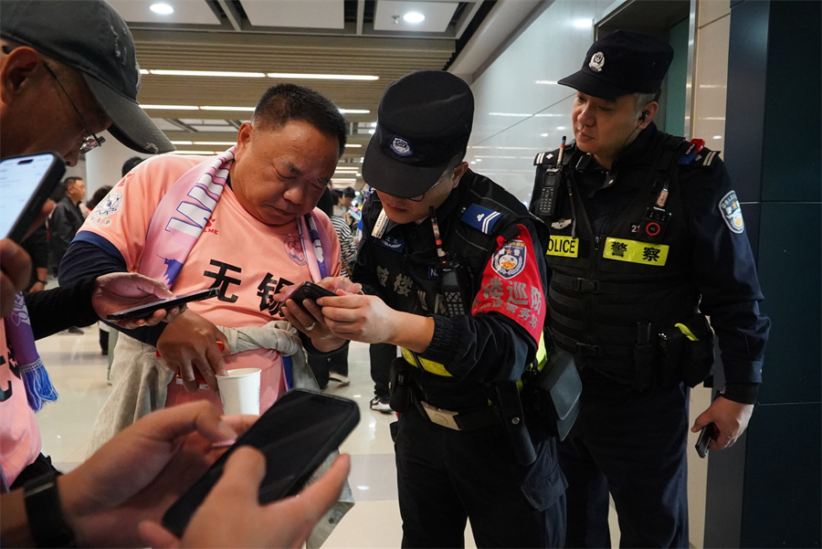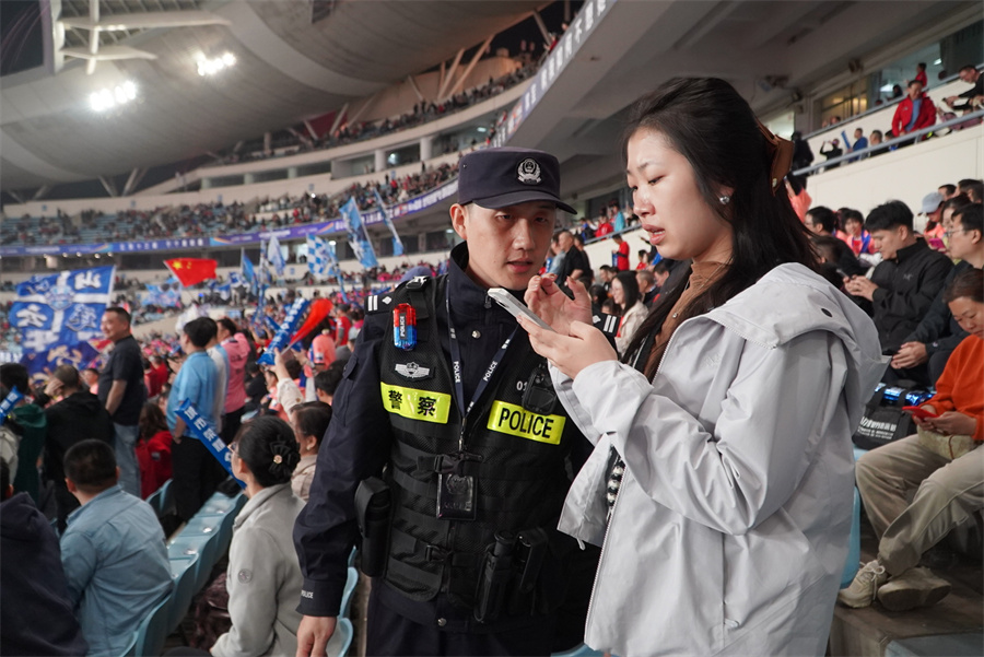 在安?,F(xiàn)場,記者了解到各區(qū)域均設(shè)置有“點(diǎn)位長”,由參戰(zhàn)單位所隊(duì)長一線帶隊(duì),建立現(xiàn)場“最小指揮單元”,確保指揮順暢。“在比賽過程中,我們會特別關(guān)注觀眾們是否有困難、有需要。一方面,我們設(shè)置了多處引導(dǎo)崗,今天外地球迷比較多,考慮到部分老年人不習(xí)慣線上導(dǎo)航,引導(dǎo)民警能第一時(shí)間幫助不熟悉環(huán)境的球迷對號入座;另一方面,我們動(dòng)態(tài)安排與看臺球迷籍貫相同的民警執(zhí)勤,用家鄉(xiāng)話來拉近距離?!庇昊ㄅ_分局一位“點(diǎn)位長”介紹。