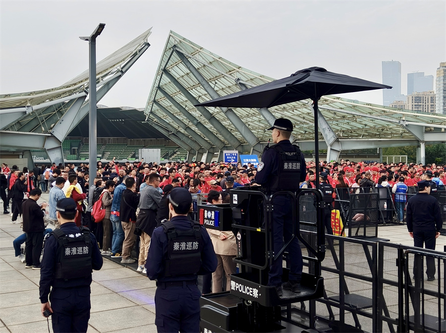 “高臺見警”,安全有感。秦淮分局執(zhí)勤民警告訴記者,站在高臺上,視野高度能達(dá)到5米多,相當(dāng)于二層樓高度,區(qū)域人流、車流、風(fēng)險(xiǎn)點(diǎn)盡收眼底;同時(shí)高臺集成的大功率擴(kuò)音系統(tǒng),讓民警聲音在區(qū)域“全覆蓋”:賽前安檢、散場疏導(dǎo)、尋人喊話……高效實(shí)現(xiàn)“看得見、喊得應(yīng)、指得準(zhǔn)”。