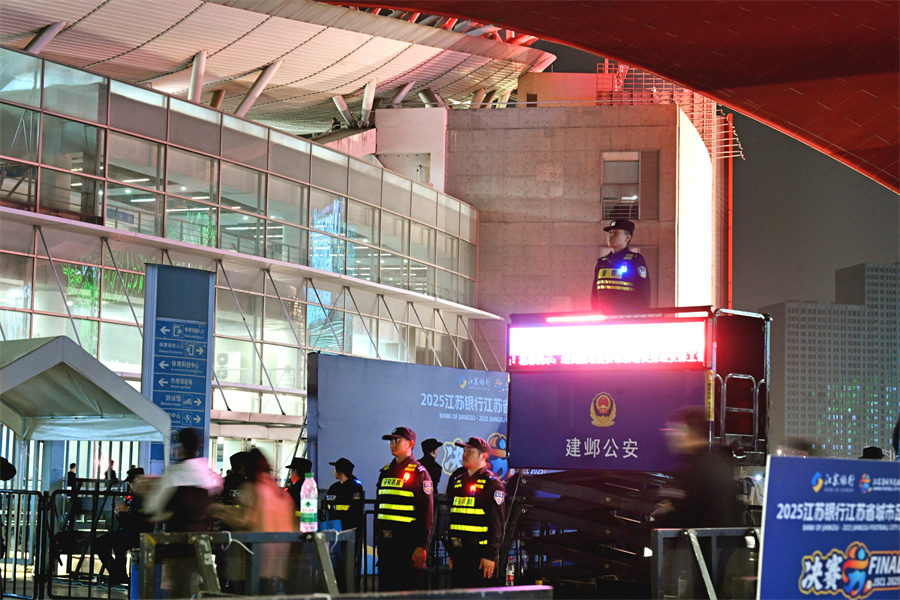 “請大家小心腳下,不要奔跑!”民警手持?jǐn)U音器,在路上引導(dǎo)人流;“擎空”執(zhí)勤臺緩緩移動(dòng),警燈閃爍,照亮散場之路……“第一次來體驗(yàn)‘蘇超’現(xiàn)場,從停車到散場,一路順暢,心里特別暖?!币晃粠畠河^賽的市民說。
