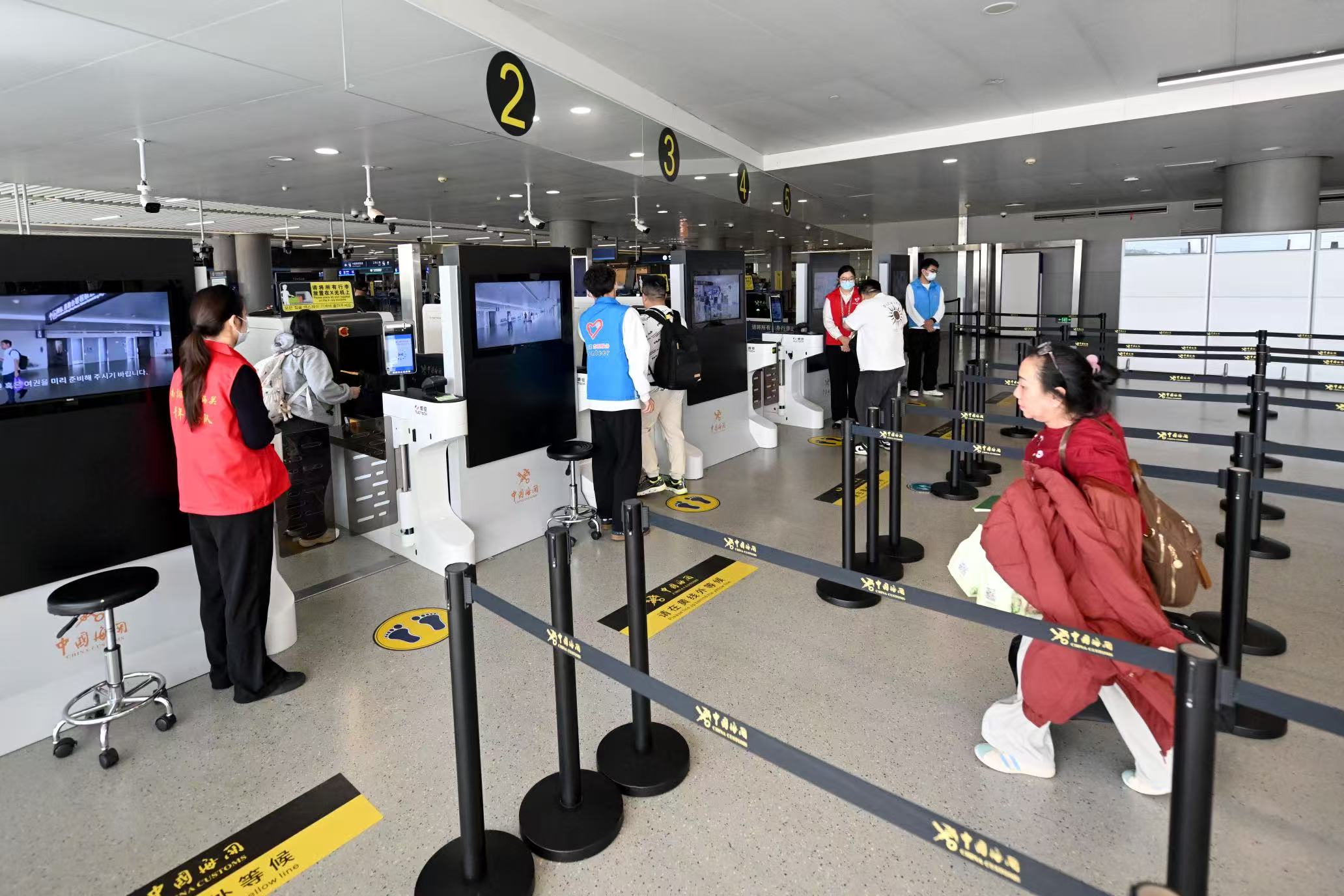 通關便利化的提升,離不開“智慧賦能”的保障。據(jù)悉,航空口岸“智慧旅檢”模式集成人臉識別、體溫監(jiān)測、核輻射檢測和手提行李查驗等功能,實現(xiàn)旅客全流程自助通關?!耙淮芜^檢、無感通關成為現(xiàn)實,入境旅客最快2分鐘即可提取行李出關,進出境通關時間整體壓縮50%。”南京祿口機場海關旅檢四科科長王曌介紹,針對國際通程航班旅客,機場優(yōu)化行李轉運流程,國際通程航班旅客無需攜帶大件行李中轉,轉機效率提升至少30分鐘。目前,南京祿口機場海關已保障3家航司開通國際通程航班業(yè)務,國際和地區(qū)通程站點已增至14個,每周保障約100架次。