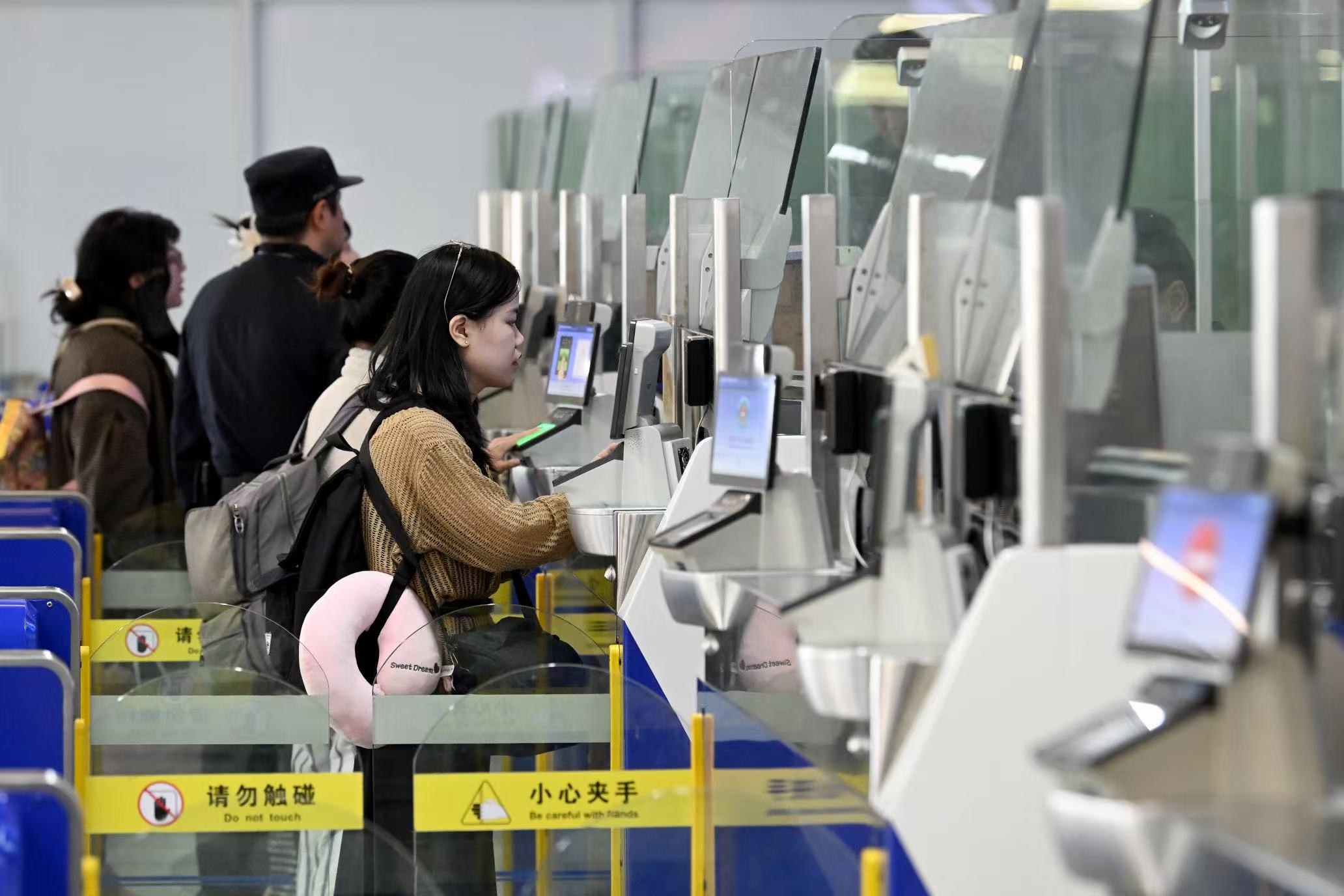 “此前南京空港口岸為直接過境旅客辦理手續(xù)時,需在旅客護照上加蓋六角形過境章,該印章作為中轉查驗的重要憑證?!蹦暇┏鋈刖尺叿罊z查站執(zhí)勤一隊民警陳曉琿告訴記者,新政實施后,過境旅客持本人有效的國際旅行證件、24小時內確定日期及座位的前往第三國(地區(qū))的聯(lián)程客票,且不離開機場口岸限定區(qū)域。只需前往國際直接過境區(qū)域辦理值機手續(xù),即可進入出境候機廳等候登機,全程無需辦理邊檢手續(xù)。
