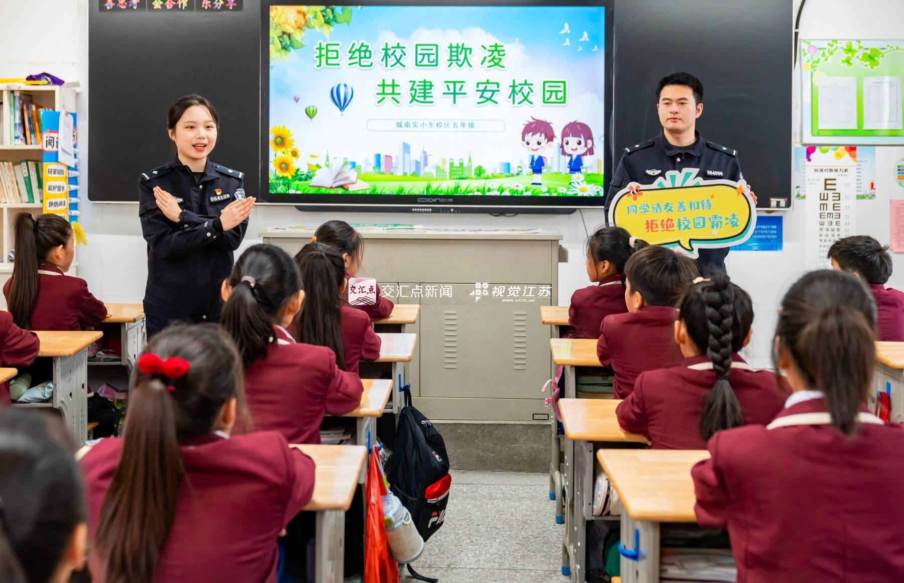 (特約攝影 翟偉凱 10:33攝 12:39上線)2025年11月4日,海安經(jīng)濟(jì)開發(fā)區(qū)實(shí)驗(yàn)小學(xué)聯(lián)合海安市公安局城東派出所開展“拒絕校園欺凌“主題活動(dòng)。民警通過以案說法、情景再現(xiàn)、答題互動(dòng)等方式,生動(dòng)講解了校園欺凌的常見表現(xiàn)、應(yīng)對(duì)方法以及相關(guān)法律知識(shí),引導(dǎo)學(xué)生提高自我保護(hù)的意識(shí)和能力。