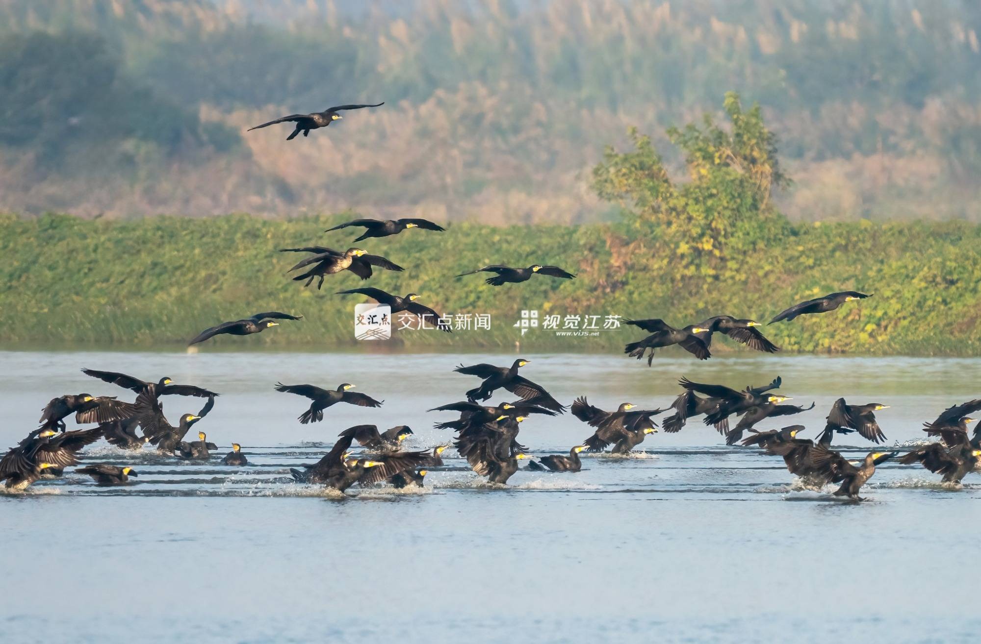||興化:成群鸕鶿現(xiàn)身濕地