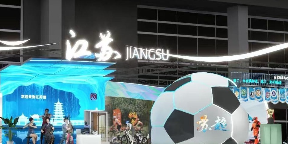 最具話題性的當數(shù)“聚勢蘇超”板塊。背景選用十竹齋蹴鞠圖,用古代蹴鞠文化連接現(xiàn)代足球熱情,直徑6米的足球造型空間格外吸睛。這里既是“蘇超周邊”的展示區(qū),也是“體育+文化”的融合場:華鳳翔的“蘇超之花——茉莉花足球紫砂壺套組”,將紫砂工藝與足球元素結(jié)合,1比1大小的足球紫砂壺憨態(tài)可掬;紅山動物園聯(lián)名足球印著可愛的動物圖案,馬莊香包足球散發(fā)著艾草清香,南京肥皂足球則把日常洗護用品變成潮玩。常州恐龍園的網(wǎng)紅恐龍“角角”“犟犟”也來“助陣”,與觀眾打卡互動,讓展臺成為進博會的“人氣打卡點”。“蘇超”冠軍獎杯亮相江蘇人文交流展區(qū),讓大家零距離感受“蘇超”冠軍的榮耀!