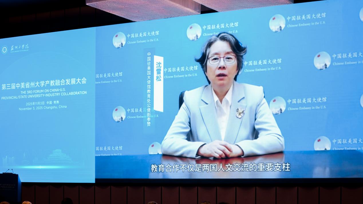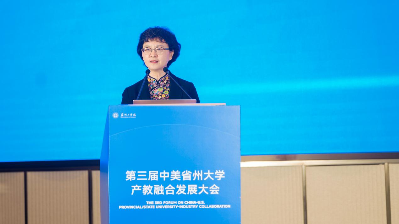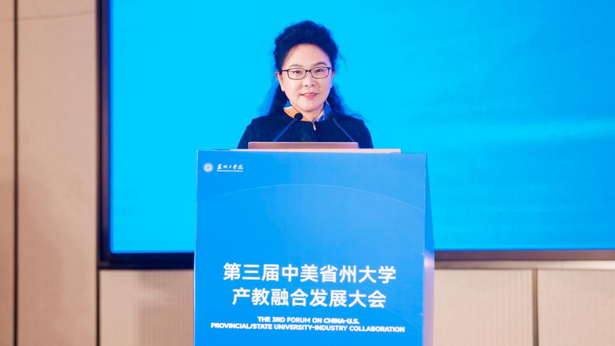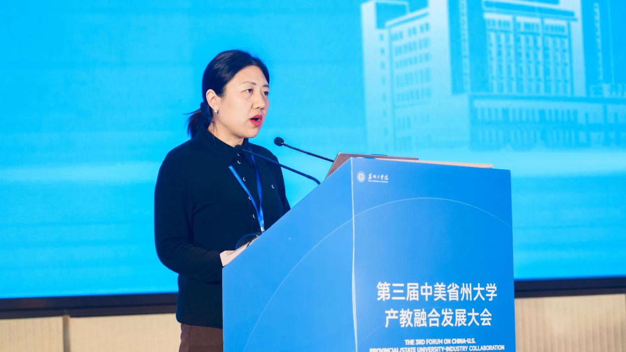 沈雪松在致辭中指出,中美省州大學產(chǎn)教融合發(fā)展大會自創(chuàng)辦以來,通過深化人才培養(yǎng)和科研創(chuàng)新,充分發(fā)揮“地方推動、高校引領(lǐng),產(chǎn)業(yè)參與、青年互學”的獨特作用,成為豐富中美教育交流,推動地方合作的新亮點與新通道,生動體現(xiàn)了中美關(guān)系互利共贏的本質(zhì)屬性。她強調(diào),未來中美雙方應(yīng)繼續(xù)秉持開放包容、合作共贏理念,突出產(chǎn)教融合特色,推動人才培養(yǎng)、科學研究和社會服務(wù)協(xié)同發(fā)展,共同為深化中美教育與人文交流,增進兩國民間友好作出新的更大貢獻,為中美關(guān)系穩(wěn)定健康可持續(xù)發(fā)展注入源源不斷的正能量。