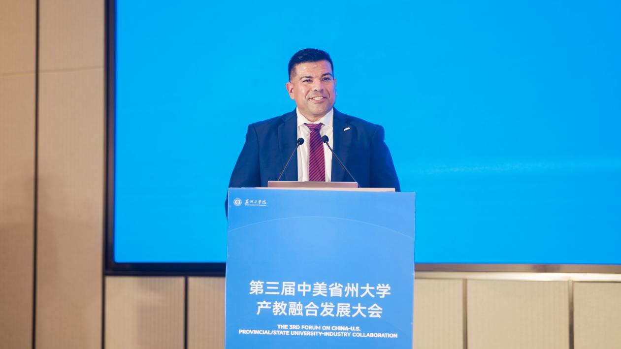 何塞?卡布拉萊斯在致辭中表示,由蘇州工學院發(fā)起的中美省州大學產(chǎn)教融合發(fā)展大會,開辟了具有國際特色的校企合作聯(lián)合新路徑,對推動中美文化交流、豐富省州關(guān)系內(nèi)涵等具有重要意義。