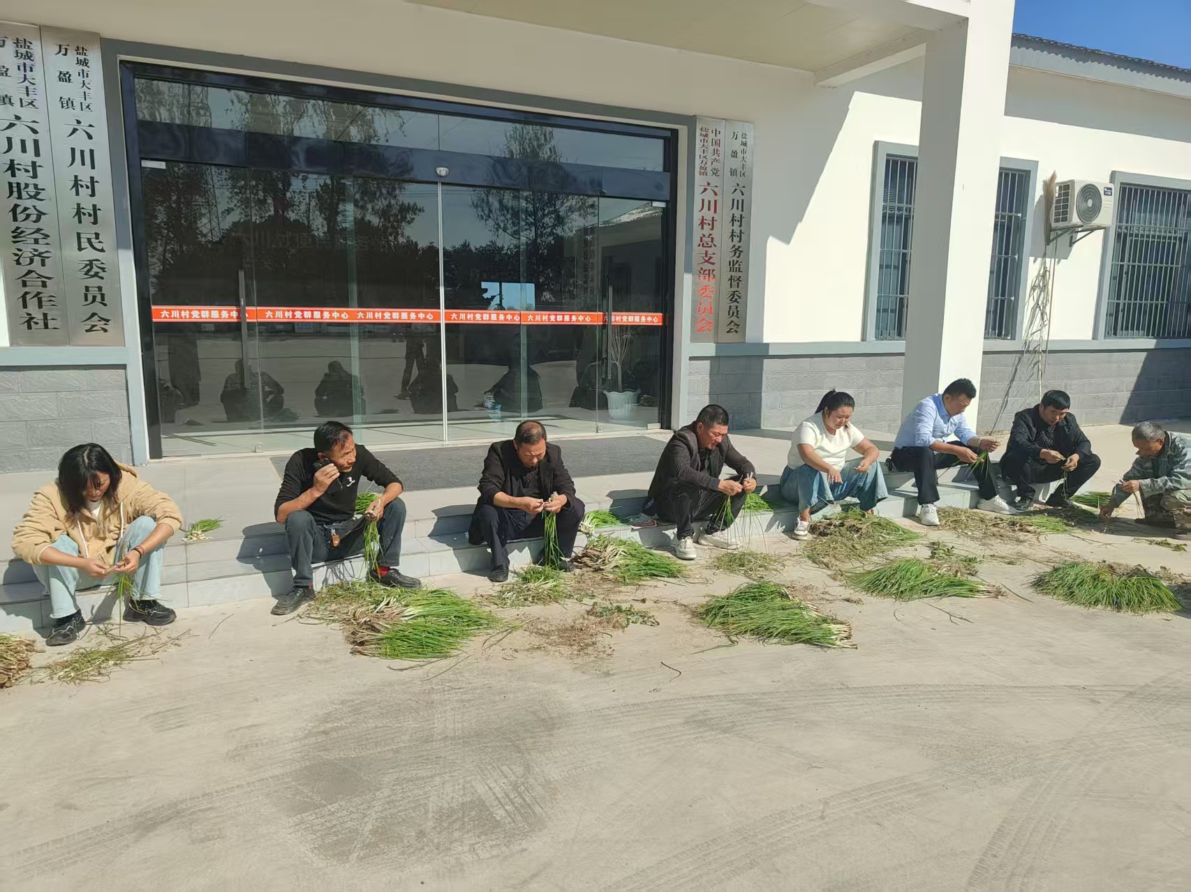 秋日的鹽城市大豐區(qū)萬(wàn)盈鎮(zhèn),是一幅流動(dòng)的豐收畫(huà)卷。10月29日,走進(jìn)六川村的黨群服務(wù)中心,眼前的景象有些特別,空氣中彌漫著辛辣又清新的蔥香味。村干部們沒(méi)有圍坐在會(huì)議室里,而是聚在屋邊的空地上,手里忙活著的,是剛從屋邊五畝空地上摘來(lái)的一摞摞青翠小蔥。他們熟練地掐掉黃葉、剝?nèi)サ撞康睦掀ぃ瑴?zhǔn)備發(fā)往長(zhǎng)期合作的市場(chǎng)與餐飲店。