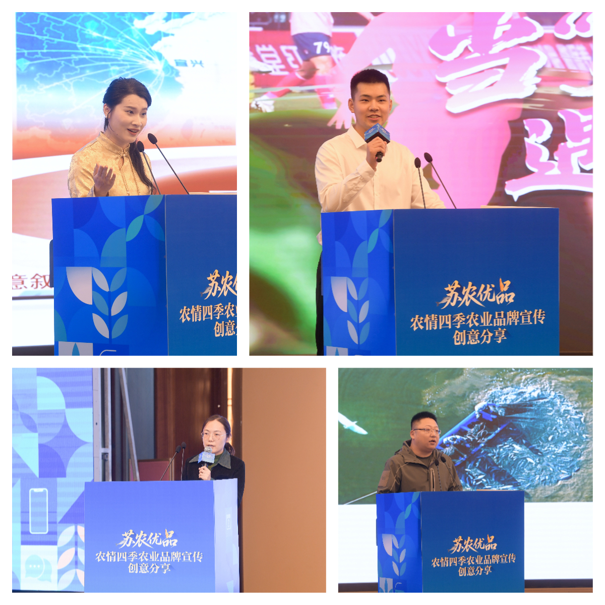 隨后的品牌創(chuàng)意分享環(huán)節(jié)作為本次活動核心,匯聚了入圍本次活動的品牌主體登臺宣講,各展風(fēng)采:陽羨茶以兩部AI動畫短視頻實現(xiàn)古今穿越,別出心裁地演繹出茶的源流與文化;儀征綠楊春茶緊跟當(dāng)下“蘇超”“雞排哥”等熱點,結(jié)合農(nóng)業(yè)生產(chǎn)中經(jīng)常遇到的問題,以輕松的形式將品牌內(nèi)涵展現(xiàn)在視頻中,甘露青魚創(chuàng)新打造擬人化IP,通過生動口播展現(xiàn)產(chǎn)業(yè)特色與品牌魅力;東臺西瓜與陽山水蜜桃聯(lián)袂“蘇超”,以情景故事傳遞品牌溫度;高郵咸鴨蛋則以快節(jié)奏方式集中呈現(xiàn)多款爆品,凸顯出產(chǎn)品豐富與品質(zhì)過硬。最終,陽山水蜜桃、馬山楊梅、東臺西瓜等五個品牌,現(xiàn)場分享表現(xiàn)優(yōu)異,獲得了優(yōu)秀創(chuàng)意獎;儀征綠楊春茶、高郵鴨蛋、時味蘇州等五個品牌獲得了入圍創(chuàng)意獎。