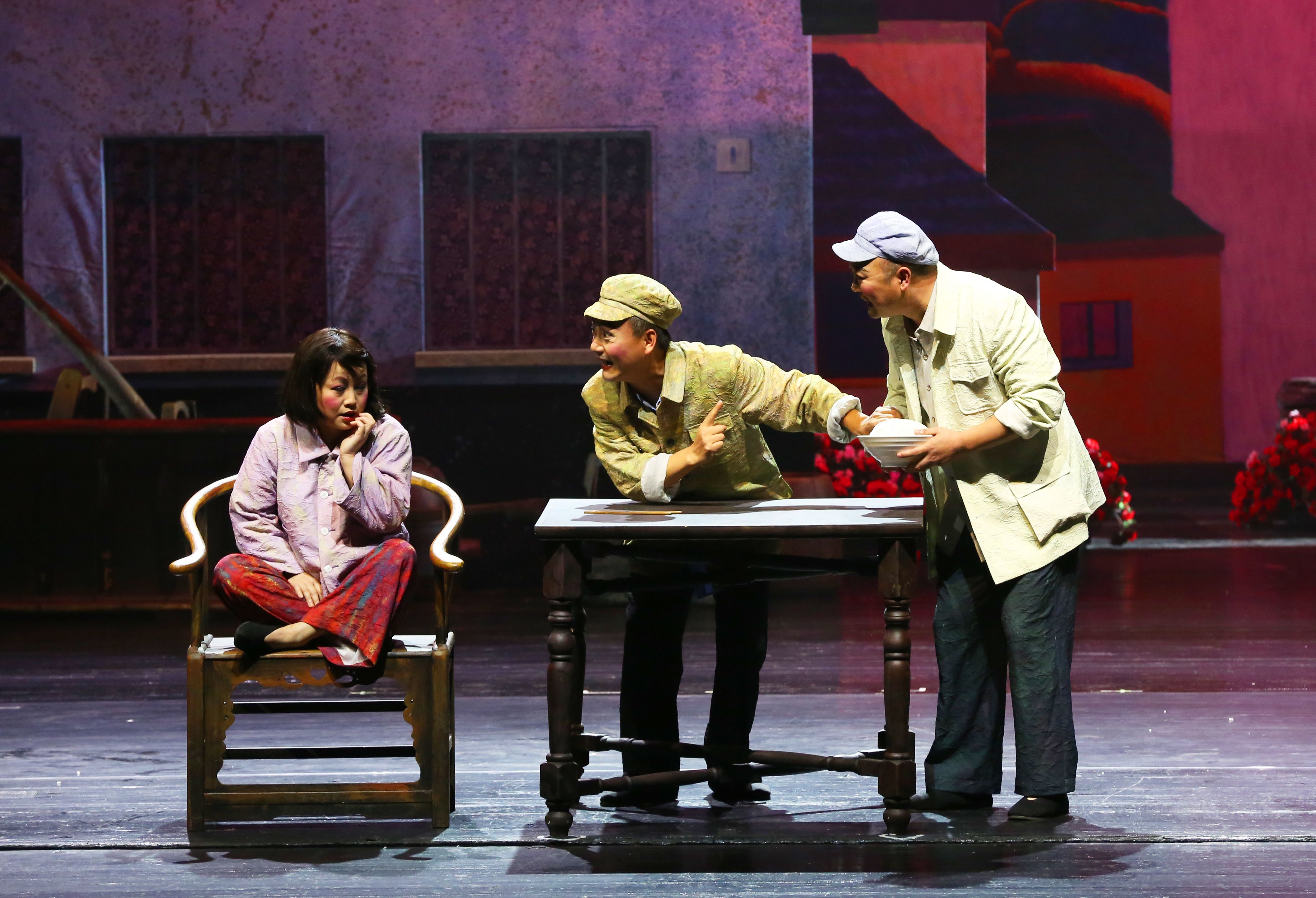 這份尊重,在劇本創(chuàng)作上體現(xiàn)得尤為突出。滑稽戲《陳奐生的吃飯問題》的編劇王宏、張軍將我國當(dāng)代文學(xué)史上堪稱經(jīng)典形象的“陳奐生”,經(jīng)過再創(chuàng)作后搬上了舞臺。以滑稽戲的藝術(shù)形式表達(dá)厚重的現(xiàn)實題材,把“笑”和“幽默”作為主要的方式去表達(dá)內(nèi)容、承載思想,對編劇有著極大挑戰(zhàn)。兩位編劇大膽創(chuàng)新,為“陳奐生”這個人物創(chuàng)作了一部別傳——它既與高曉聲筆下的原作血脈相連、氣質(zhì)相似,又在主題和情節(jié)上獨立成篇,二者彼此映襯,各具風(fēng)采。